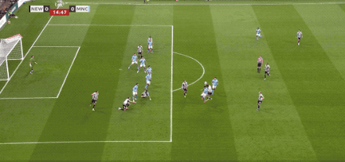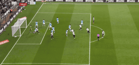 纽卡斯尔获得角球,面对奥苏拉的头球,特拉福德的扑救手型不对,沃尔特马德头球攻门,尼科·冈萨雷斯门线救险,曼城逃过一劫。