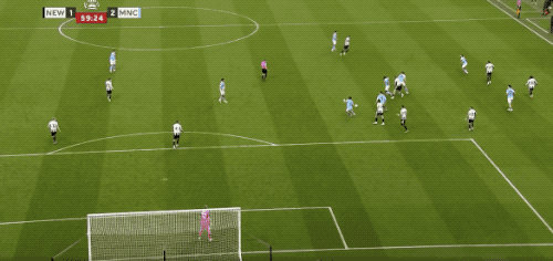 上半场的后半段,两队局面反转,曼城完成了11次射门,围着纽卡斯尔的禁区狂轰滥炸,纽卡斯尔只有1次射门。